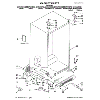 Parts for Whirlpool GD5NVAXSA03: 01 - Cabinet Parts