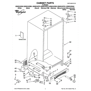 Parts for Whirlpool GD5NVAXST01: 01 - Cabinet Parts