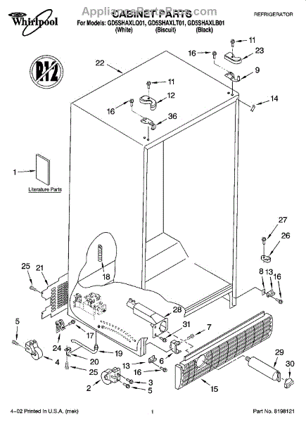 Parts for Whirlpool GD5SHAXLQ01: 01 - Cabinet Parts