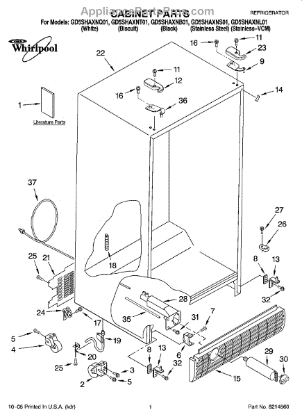 Parts for Whirlpool GD5SHAXNS01: 01 - Cabinet Parts