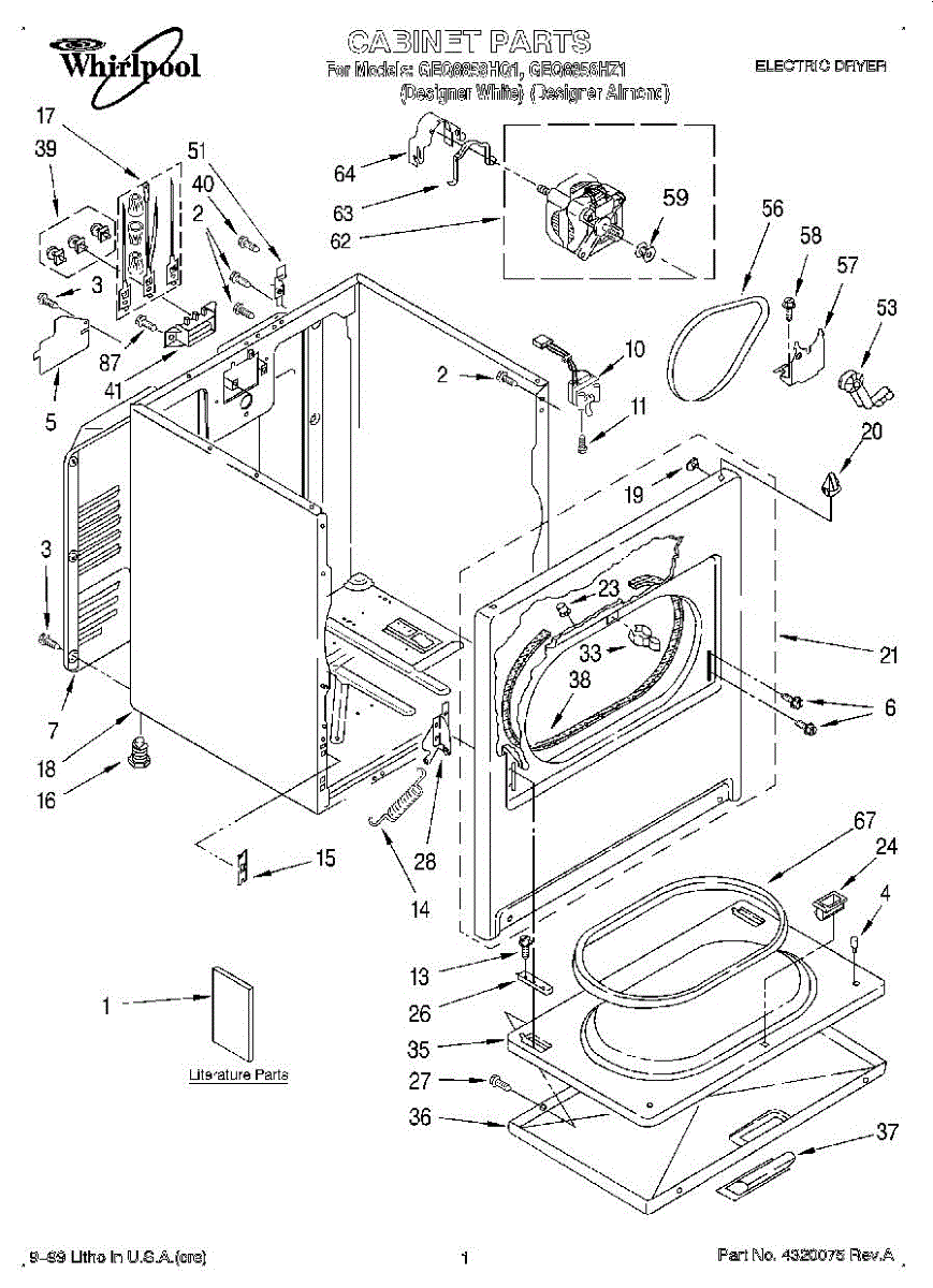 Fits all Whirlpool-made dryers (Whirlpool, Kenmore with prefix 110, Roper, KitchenAid, and Estate). Matching belt 341241 and rear support rollers 349241T. Whirlpool dryer repair manual 677818L.