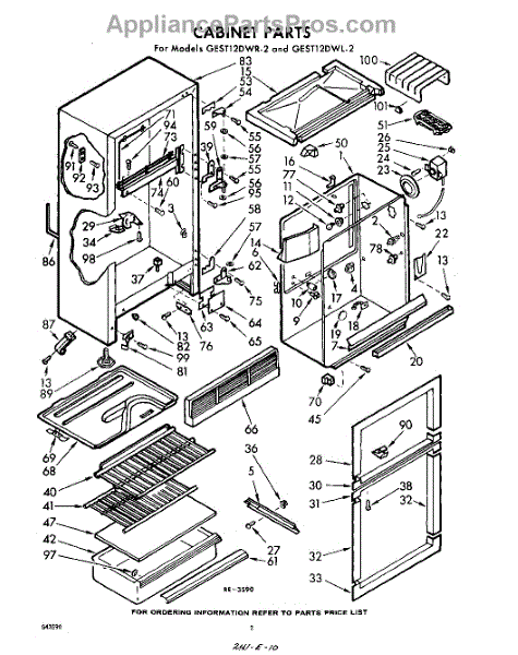 Parts for Whirlpool GEST12DWR2: 02 - Cabinet Parts