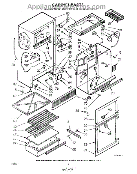 Parts for Whirlpool GEXT14DTWR1: 02 - Cabinet Parts