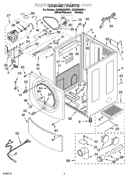 Parts for Whirlpool GGW9260PW1: 02 - Cabinet Parts