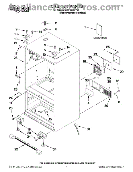 Parts for Whirlpool GI0FSAXVY07: 01 - Cabinet Parts
