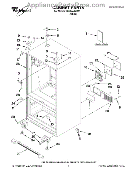 The Leveling Leg is an OEM replacement part for Whirlpool refrigerators. It is one of four legs situated internally at the base corners for proper tilt positioning. It raises or lowers each leg independently to stabilize units on uneven kitchen floors. Causes of replacement consist of wear from continual torque required during positioning processes. Thread damage or corrosion buildup attributable to floor locations over extended use necessitates periodic renewal as well. Symptoms involve: