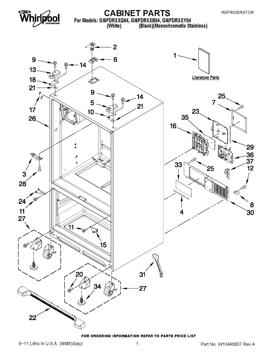 Front left roller assembly supports your refrigerator and enables smooth movement for cleaning. Replace when damaged or worn from moving. Verify fit with your model.