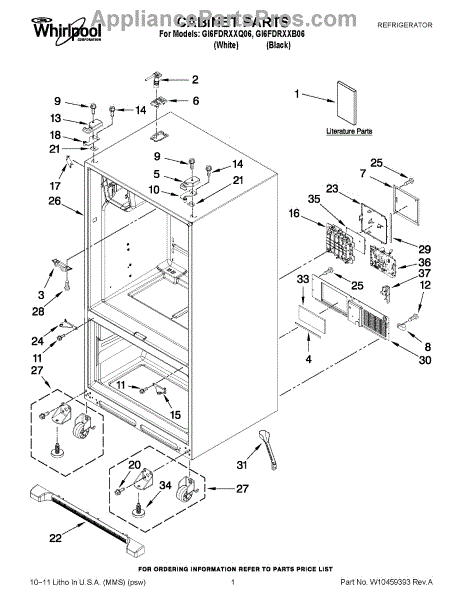 Parts for Whirlpool GI6FDRXXQ06: 01 - Cabinet Parts