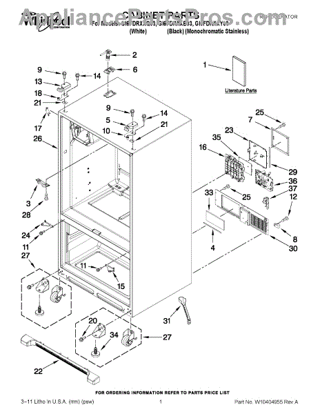 Parts for Whirlpool GI6FDRXXY03: 01 - Cabinet Parts