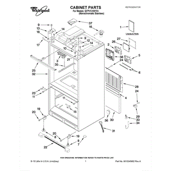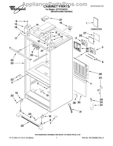 The Leveling Leg is an OEM replacement part for Whirlpool refrigerators. It is one of four legs situated internally at the base corners for proper tilt positioning. It raises or lowers each leg independently to stabilize units on uneven kitchen floors. Causes of replacement consist of wear from continual torque required during positioning processes. Thread damage or corrosion buildup attributable to floor locations over extended use necessitates periodic renewal as well. Symptoms involve: