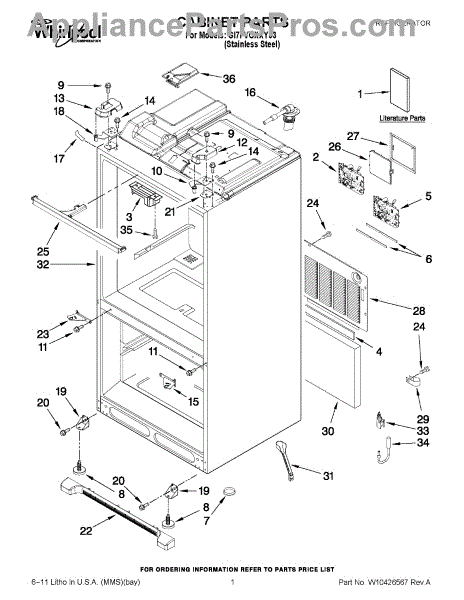 The Leveling Leg is an OEM replacement part for Whirlpool refrigerators. It is one of four legs situated internally at the base corners for proper tilt positioning. It raises or lowers each leg independently to stabilize units on uneven kitchen floors. Causes of replacement consist of wear from continual torque required during positioning processes. Thread damage or corrosion buildup attributable to floor locations over extended use necessitates periodic renewal as well. Symptoms involve: