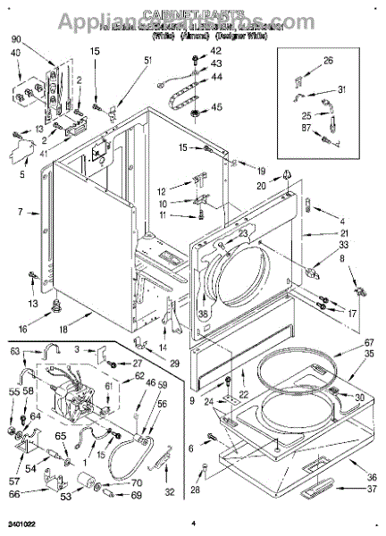 Fits all Whirlpool-made dryers (Whirlpool, Kenmore with prefix 110, Roper, KitchenAid, and Estate). Matching belt 341241 and rear support rollers 349241T. Whirlpool dryer repair manual 677818L.