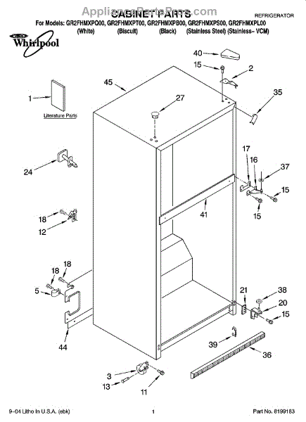 Parts for Whirlpool GR2FHMXPT00: 01 - Cabinet Parts