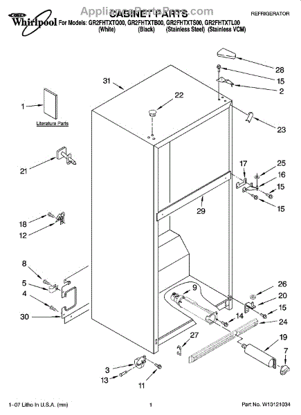 Repair manual for refrigerators and freezers made by Whirlpool. Covered brands include Whirlpool, Sears, Kenmore, Kitchen Aid, Roper, and Estate. Easy to follow photographs and step-by-step repair procedures.
