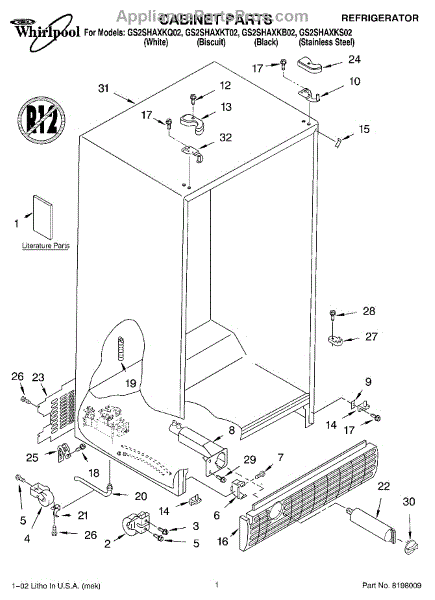 Parts for Whirlpool GS2SHAXKB02: 01 - Cabinet Parts