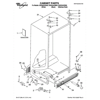 This cabinet roller assembly supports the refrigerator at the base and lets you roll the unit forward for cleaning or service. Replace a cracked or seized roller to restore smooth movement and a stable, level stance. What it does: