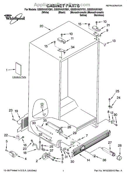 Parts for Whirlpool GS5SVAXVA01: 01 - Cabinet Parts