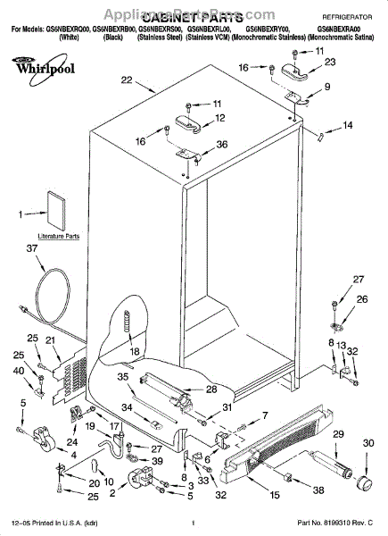 Parts for Whirlpool GS6NBEXRA00: 01 - Cabinet Parts