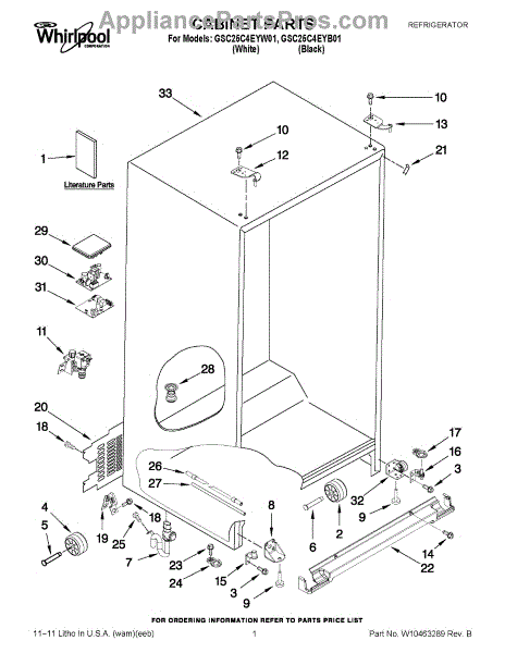 Parts for Whirlpool GSC25C4EYW01: 01 - Cabinet Parts