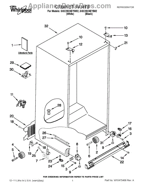 Parts for Whirlpool GSC25C5EYB02: 01 - Cabinet Parts