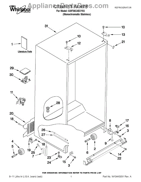 Parts for Whirlpool GSF26C4EXY03: 01 - Cabinet Parts