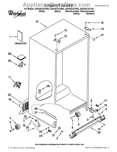 The Leveling Leg is an OEM replacement part for Whirlpool refrigerators. It is one of four legs situated internally at the base corners for proper tilt positioning. It raises or lowers each leg independently to stabilize units on uneven kitchen floors. Causes of replacement consist of wear from continual torque required during positioning processes. Thread damage or corrosion buildup attributable to floor locations over extended use necessitates periodic renewal as well. Symptoms involve: