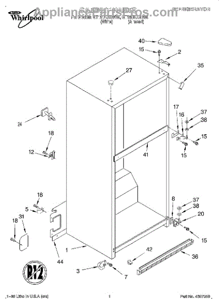 The Hinge Washer is an OEM replacement part for Whirlpool refrigerators. This small washer plays a supports the refrigerator door hinge assembly. Center hinge plastic washer. Causes of a bad hinge washer are generally normal wear and tear from extensive use. As the washer absorbs pressure each time the door is opened or closed, it can gradually deteriorate or crack. Physical damage is also possible if the door is accidentally struck or slammed. Symptoms of a worn or damaged hinge washer include: