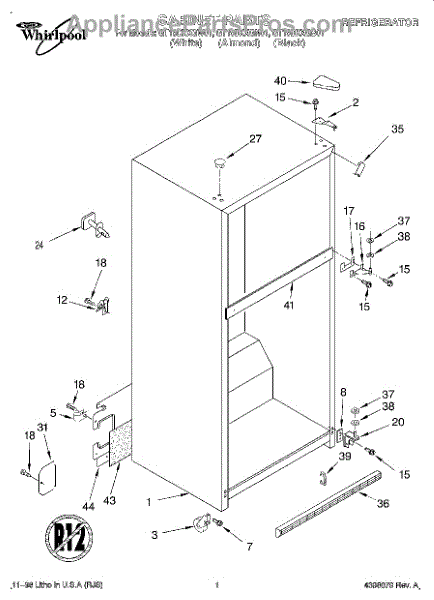 The Hinge Washer is an OEM replacement part for Whirlpool refrigerators. This small washer plays a supports the refrigerator door hinge assembly. Center hinge plastic washer. Causes of a bad hinge washer are generally normal wear and tear from extensive use. As the washer absorbs pressure each time the door is opened or closed, it can gradually deteriorate or crack. Physical damage is also possible if the door is accidentally struck or slammed. Symptoms of a worn or damaged hinge washer include: