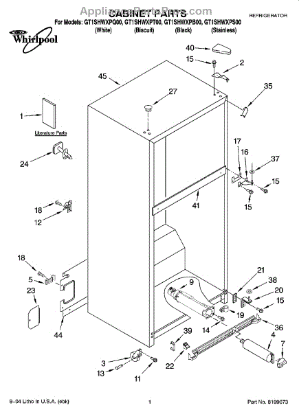 Parts for Whirlpool GT1SHWXPS00: 01 - Cabinet Parts