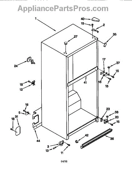 The Center Door Hinge is an OEM replacement part for Whirlpool refrigerators. As one of several hinges supporting each refrigerator door panel, it works to guide opening and closing movements. Causes of a faulty center hinge tend to be wear from years of continuous operation with near-daily door cycles. Complete failure could also occur in the event of physical damage sustained during a repair or installation issue. Symptoms include:
