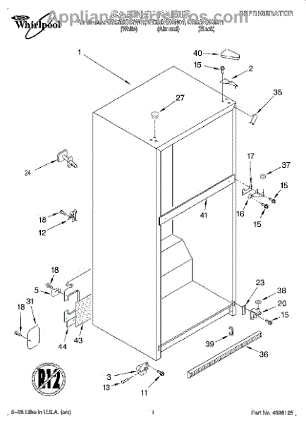 The Hinge Washer is an OEM replacement part for Whirlpool refrigerators. This small washer plays a supports the refrigerator door hinge assembly. Center hinge plastic washer. Causes of a bad hinge washer are generally normal wear and tear from extensive use. As the washer absorbs pressure each time the door is opened or closed, it can gradually deteriorate or crack. Physical damage is also possible if the door is accidentally struck or slammed. Symptoms of a worn or damaged hinge washer include: