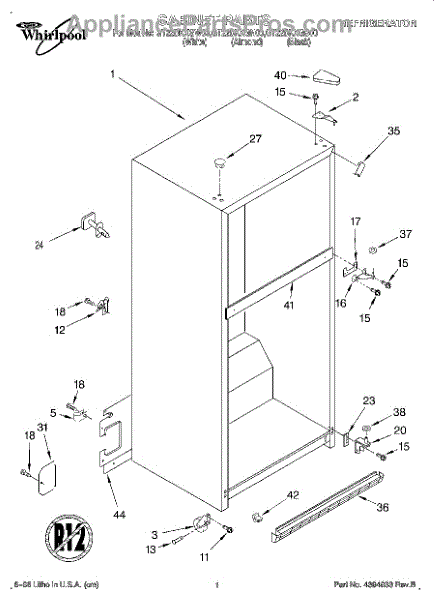 The Hinge Washer is an OEM replacement part for Whirlpool refrigerators. This small washer plays a supports the refrigerator door hinge assembly. Center hinge plastic washer. Causes of a bad hinge washer are generally normal wear and tear from extensive use. As the washer absorbs pressure each time the door is opened or closed, it can gradually deteriorate or crack. Physical damage is also possible if the door is accidentally struck or slammed. Symptoms of a worn or damaged hinge washer include: