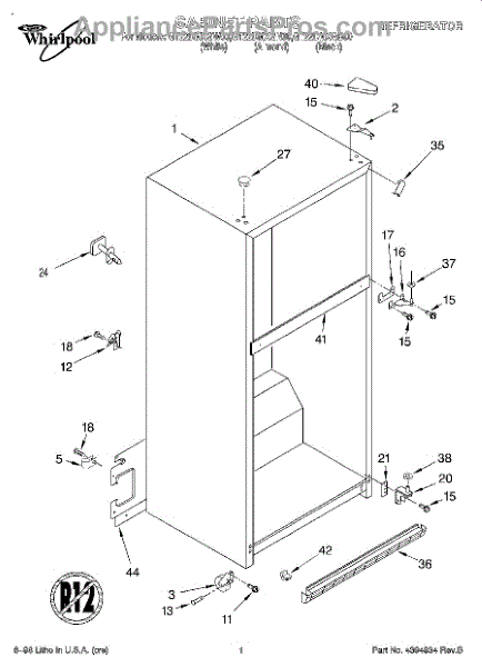 The Hinge Washer is an OEM replacement part for Whirlpool refrigerators. This small washer plays a supports the refrigerator door hinge assembly. Center hinge plastic washer. Causes of a bad hinge washer are generally normal wear and tear from extensive use. As the washer absorbs pressure each time the door is opened or closed, it can gradually deteriorate or crack. Physical damage is also possible if the door is accidentally struck or slammed. Symptoms of a worn or damaged hinge washer include: