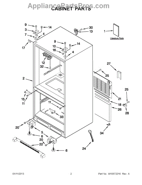 The Roller Assembly is an OEM part for Whirlpool refrigerators. It contains heavy-duty ball bearing rollers located along the bottom front-right cabinet. Repeatedly maneuvering fully-loaded refrigerators can cause cabinet rollers to crack or bearing races to deteriorate over extended use. Potential failure causes include structural cracks from strong impacts or bearing lubrication washing away from repeated wet cleaning. Symptoms of faulty cabinet rollers include:
