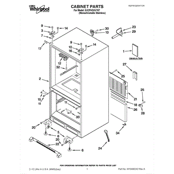 The Leveling Leg is an OEM replacement part for Whirlpool refrigerators. It is one of four legs situated internally at the base corners for proper tilt positioning. It raises or lowers each leg independently to stabilize units on uneven kitchen floors. Causes of replacement consist of wear from continual torque required during positioning processes. Thread damage or corrosion buildup attributable to floor locations over extended use necessitates periodic renewal as well. Symptoms involve: