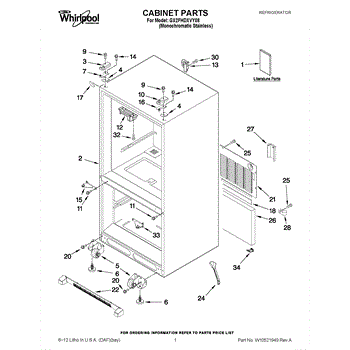 The Roller Assembly is an OEM part for Whirlpool refrigerators. It contains heavy-duty ball bearing rollers located along the bottom front-right cabinet. Repeatedly maneuvering fully-loaded refrigerators can cause cabinet rollers to crack or bearing races to deteriorate over extended use. Potential failure causes include structural cracks from strong impacts or bearing lubrication washing away from repeated wet cleaning. Symptoms of faulty cabinet rollers include: