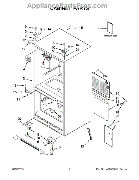 The Leveling Leg is an OEM replacement part for Whirlpool refrigerators. It is one of four legs situated internally at the base corners for proper tilt positioning. It raises or lowers each leg independently to stabilize units on uneven kitchen floors. Causes of replacement consist of wear from continual torque required during positioning processes. Thread damage or corrosion buildup attributable to floor locations over extended use necessitates periodic renewal as well. Symptoms involve: