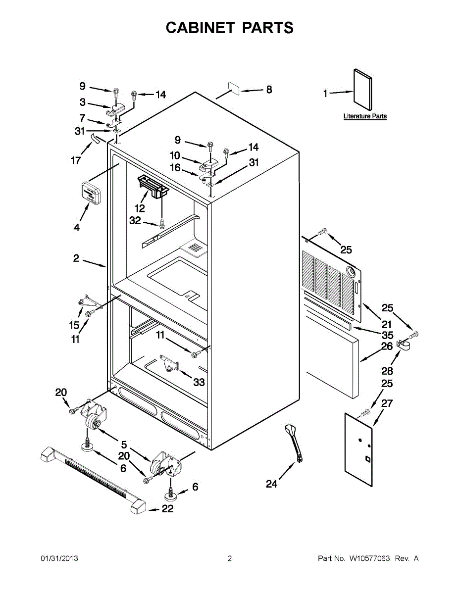 Right-side top hinge cover that restores your refrigerator's finished appearance. Snaps over hinge hardware to hide screws and protect from dust.