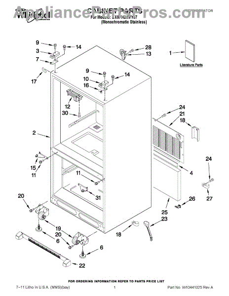 The Leveling Leg is an OEM replacement part for Whirlpool refrigerators. It is one of four legs situated internally at the base corners for proper tilt positioning. It raises or lowers each leg independently to stabilize units on uneven kitchen floors. Causes of replacement consist of wear from continual torque required during positioning processes. Thread damage or corrosion buildup attributable to floor locations over extended use necessitates periodic renewal as well. Symptoms involve: