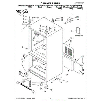 Parts for Whirlpool GX5SHDXVD00: 01 - Cabinet Parts