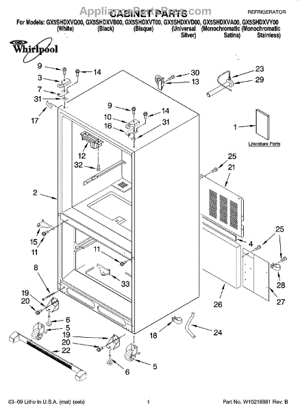 Parts for Whirlpool GX5SHDXVT00: 01 - Cabinet Parts