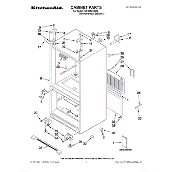 The Kickplate Grille is an OEM part for Whirlpool refrigerators. It is installed at the base of the refrigerator and serves to cover and protect the lower ventilation area, helping to ensure proper airflow to the condenser and other components. It measures approximately 37 inches wide, 2 inches high, and 4 inches deep.