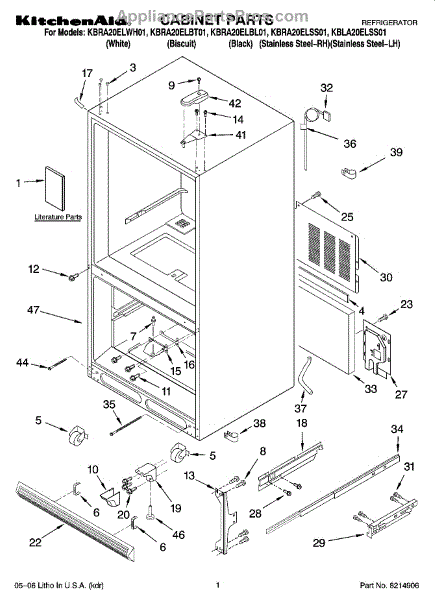 Parts for Kitchenaid KBLA20ELSS01: 01 - Cabinet Parts