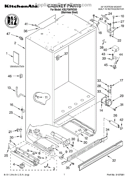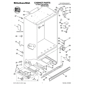 Parts for Kitchenaid KBLP36FKS00: 01 - Cabinet, Literature Parts