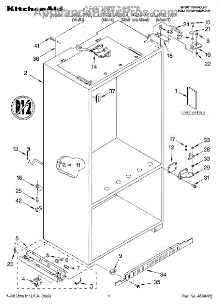 Parts for Kitchenaid KBLP36MHW00: 01 - Cabinet, Literature Parts