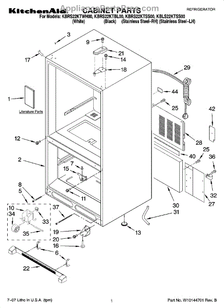 Parts for Kitchenaid KBLS22KTSS00: 01 - Cabinet Parts