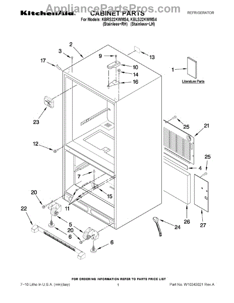 Parts for Kitchenaid KBLS22KWMS4: 01 - Cabinet Parts