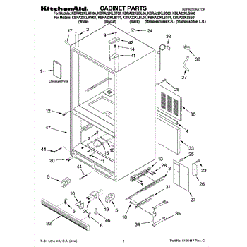 Parts for Kitchenaid KBRA22KLWH01: 01 - Cabinet Parts