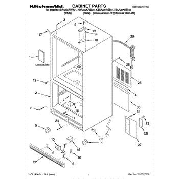 Parts for Kitchenaid KBRA22KRWH01: 01 - Cabinet Parts