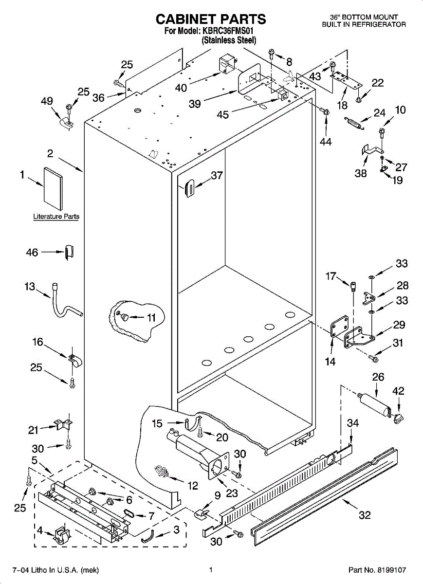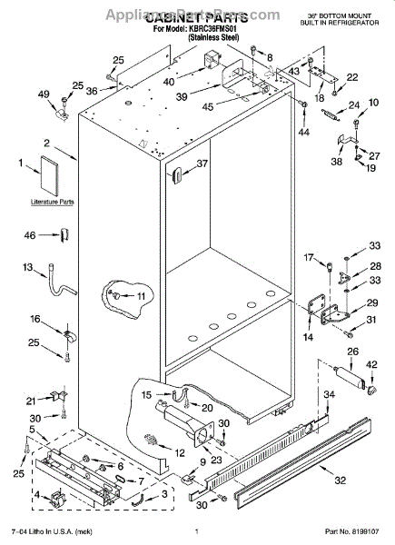 Parts for Kitchenaid KBRC36FMS01: 01 - Cabinet Parts